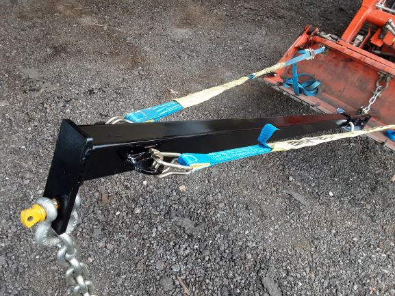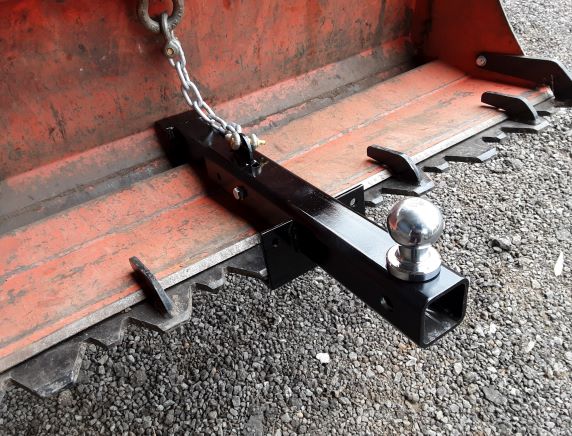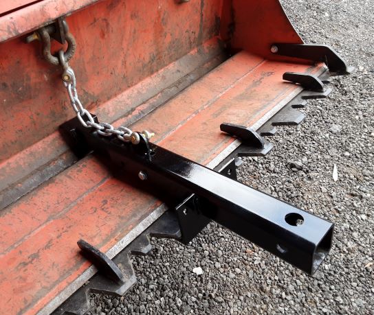 The 4-in-1 Hitch is a fast, versatile solution for turning your 4-in-1 bucket into a towing or lifting attachment. It installs in seconds—simply open the bucket, slide the hitch into position, close the bucket, and secure the safety chain. You're ready to go in moments. Designed to fit the Kubota BX tractor. Other makes and models made on request.