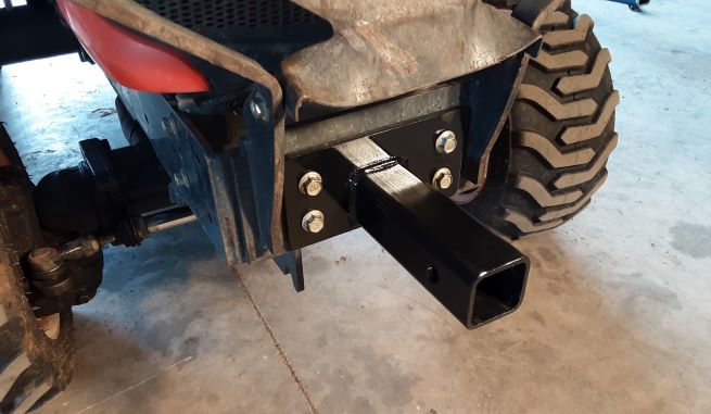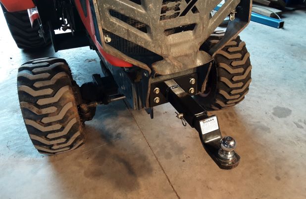 The BX Front Hitch is designed to mount directly to the front bumper of your Kubota BX Series tractor, enabling the use of a standard hitch mount for front-end maneuvering, trailer spotting, or light towing tasks.