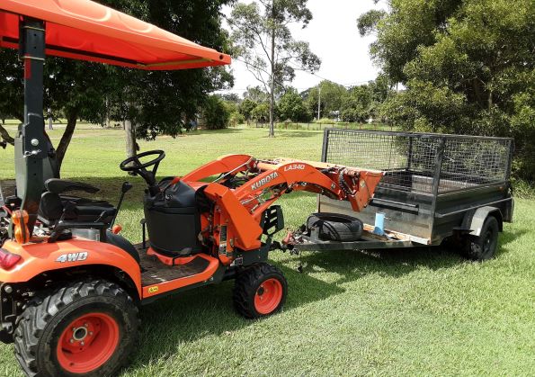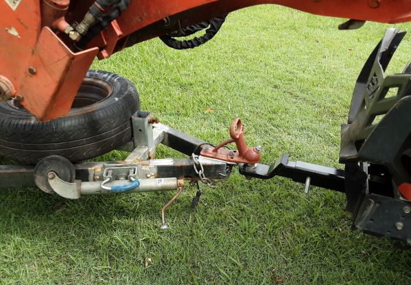 Note do not exceed your tractor's rated front axle capacity when towing. The ball mount may need to be removed (depending on length) when fully lowering the bucket or using the loader stand. Long ball mounts may require shortening or drilling an additional pin hole. The hitch pin should be positioned no more than 75mm from the rear of the mount.
