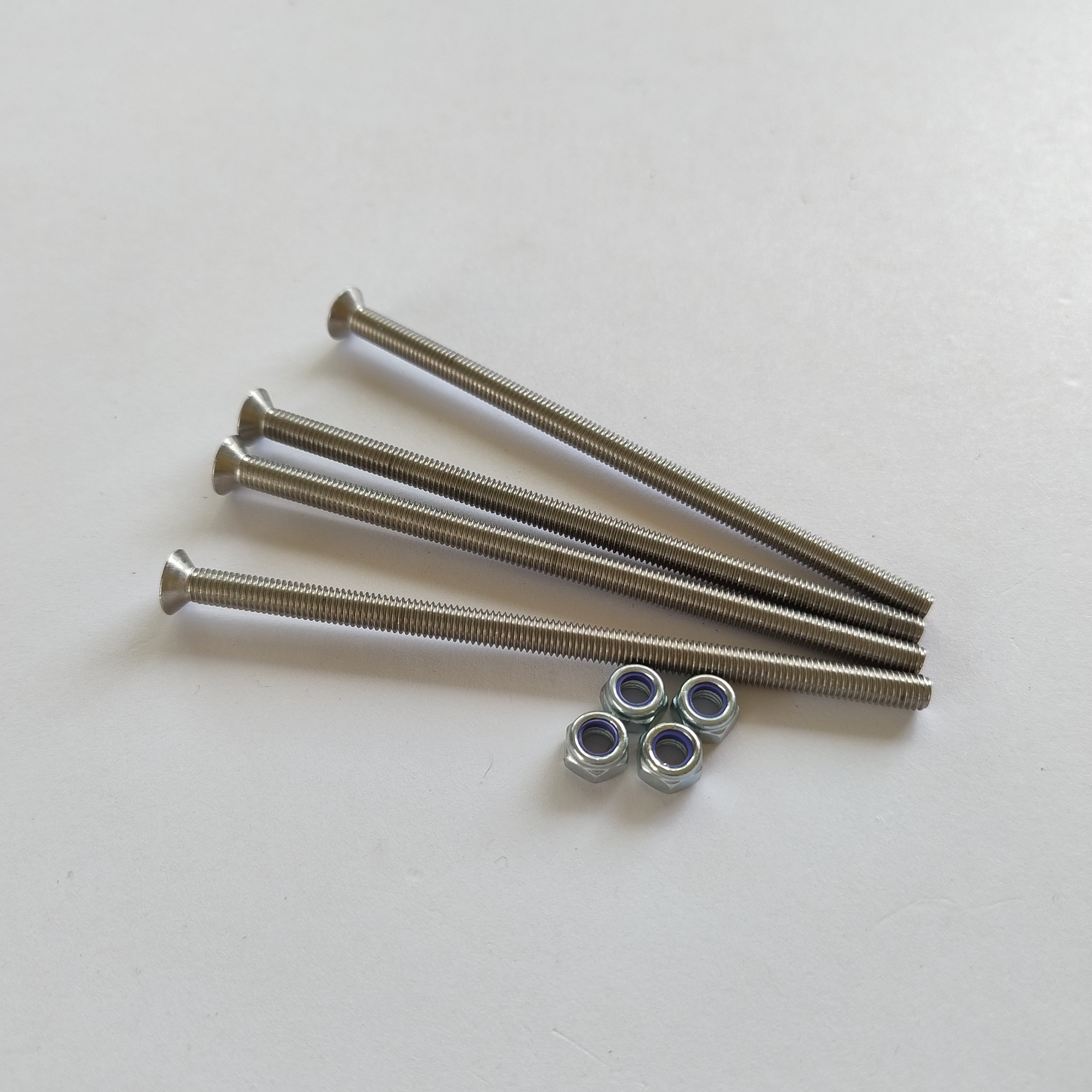 This pack contains 4 x countersunk M5 bolts and 4x M5 Nyloc nuts, designed for those making their own custom mounts.
